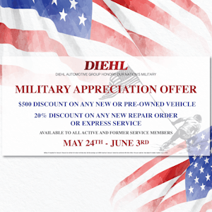 As Memorial Day approaches, we at Diehl Automotive want to honor and remember those who have served our nation with gratitude and respect.  It is a time of reflection and appreciation for the sacrifices made by our brave heroes.  In their honor, we are thrilled to announce our Memorial Day Sales Event, where exceptional savings and outstanding offers await you!
