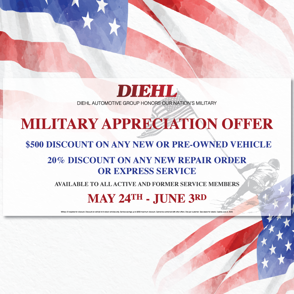 As Memorial Day approaches, we at Diehl Automotive want to honor and remember those who have served our nation with gratitude and respect.  It is a time of reflection and appreciation for the sacrifices made by our brave heroes.  In their honor, we are thrilled to announce our Memorial Day Sales Event, where exceptional savings and outstanding offers await you!