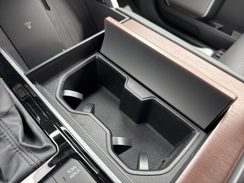 - Fixed center console with gated shift lever, driving controls, four cup holders, and center storage bin