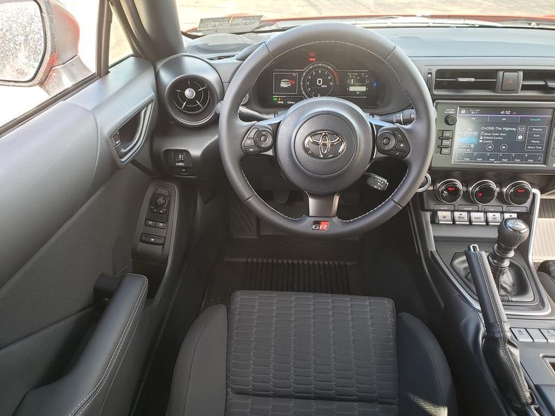 - 7-in. Thin-Film Transistor (TFT) GR digital gauge cluster with LCD Multi-Information Display (MID); GR logo and boxer engine animations on start-up; and the following vehicle data: central tachometer with Sport and Track Modes, odometer, twin tripmeters, outside ambient temperature, engine coolant/oil temperatures, average trip speed, driving time and miles covered, stopwatch/lap timer, current/average fuel consumption, rpm and hp/torque curves, instantaneous and historical G-force friction circle with digital readout