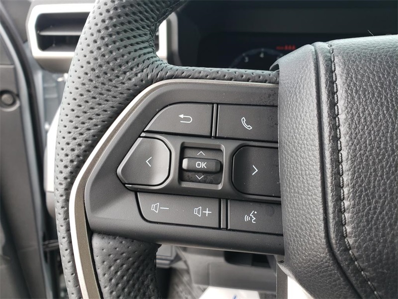 - Leather-trimmed manual tilt/telescopic steering wheel with phone, audio, display/infotainment, and Driver Assist controls