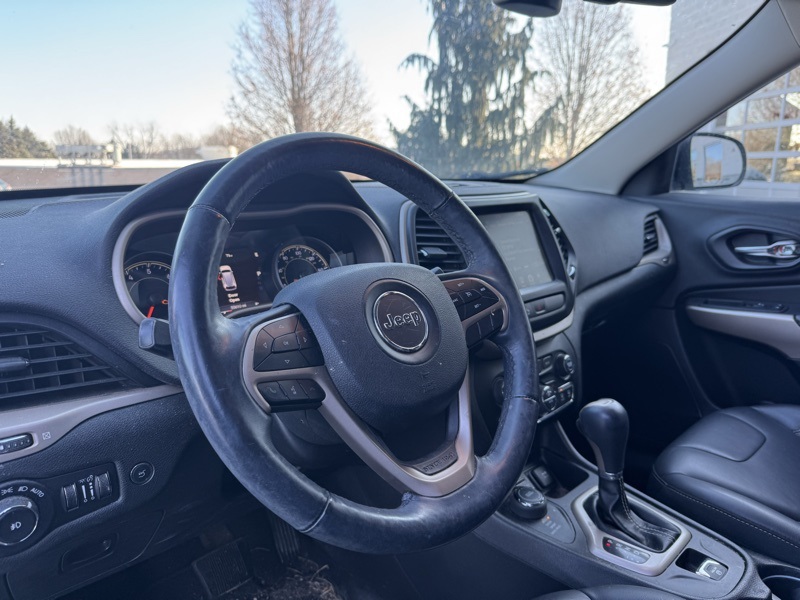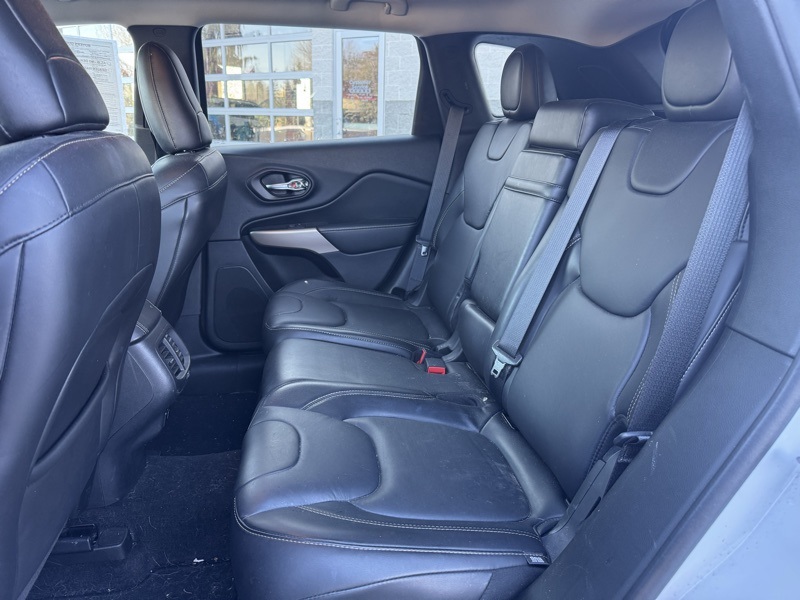 Bright White Clearcoat 2018 Jeep Cherokee Limited 4D Sport Utility 4WD 2.4L I4 MultiAir 9-Speed 948TE Automatic Quick Order Package 21G, 3.734 Axle Ratio, 4-Wheel Disc Brakes, 6 Speakers, 600 Amp Maintenance Free Battery, 8.4" Touchscreen Display, ABS brakes, Active Grille Shutters, Air Conditioning, Alloy wheels, AM/FM radio: SiriusXM, Anti-whiplash front head restraints, Auto-dimming Rear-View mirror, Automatic temperature control, Auxiliary Transmission Oil Cooler, Brake assist, Bumpers: body-color, Compass, Delay-off headlights, Driver door bin, Driver vanity mirror, Dual front impact airbags, Dual front side impact airbags, Electronic Range Select, Electronic Stability Control, Emergency communication system: Uconnect Access, Engine Oil Cooler, Exterior Mirrors Courtesy Lamps, Exterior Mirrors w/Supplemental Signals, Four wheel independent suspension, Front anti-roll bar, Front Bucket Seats, Front Center Armrest, Front dual zone A/C, Front fog lights, Front reading lights, Fully automatic headlights, Garage door transmitter, GPS Antenna Input, Heated door mirrors, Heated front seats, Heated steering wheel, High intensity discharge headlights: Bi-Xenon, Illuminated entry, Integrated Voice Command w/Bluetooth, Knee airbag, Leather Shift Knob, Leather Trimmed Bucket Seats, Low tire pressure warning, Normal Duty Suspension, Occupant sensing airbag, Outside temperature display, Overhead airbag, Overhead console, Panic alarm, ParkView Rear Back-Up Camera, Passenger door bin, Passenger vanity mirror, Power door mirrors, Power driver seat, Power Liftgate, Power steering, Power windows, Radio data system, Radio: Uconnect 3C w/8.4" Display, Rear anti-roll bar, Rear reading lights, Rear seat center armrest, Rear side impact airbag, Rear window defroster, Rear window wiper, Remote keyless entry, Roof rack: rails only, Security system, SiriusXM Satellite Radio, Speed control, Speed-sensing steering, Split folding rear seat, Spoiler, Steering wheel mounted audio controls, Tachometer, Telescoping steering wheel, Tilt steering wheel, Traction control, Trip computer, Turn signal indicator mirrors, Uconnect Access, Variably intermittent wipers, Voltmeter, and Wheels: 18" x 7" Painted Aluminum. Odometer is 33610 miles below market average! 21/28 City/Highway MPG
