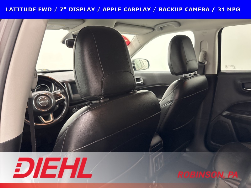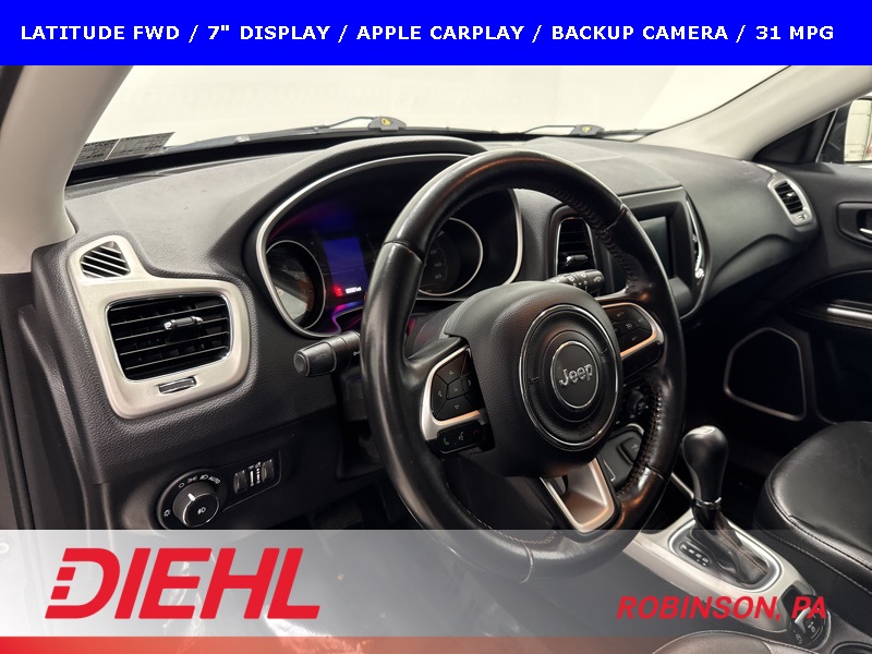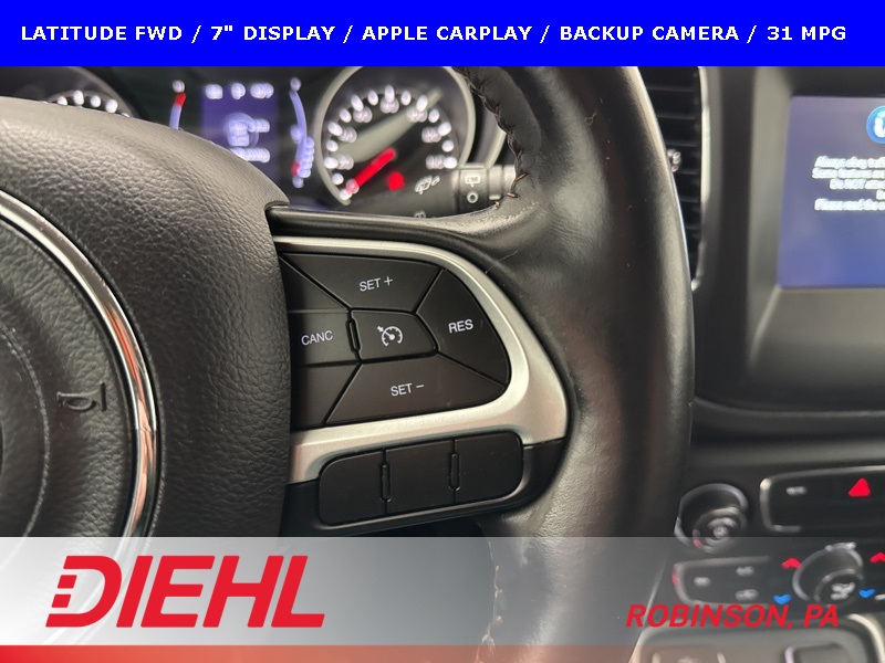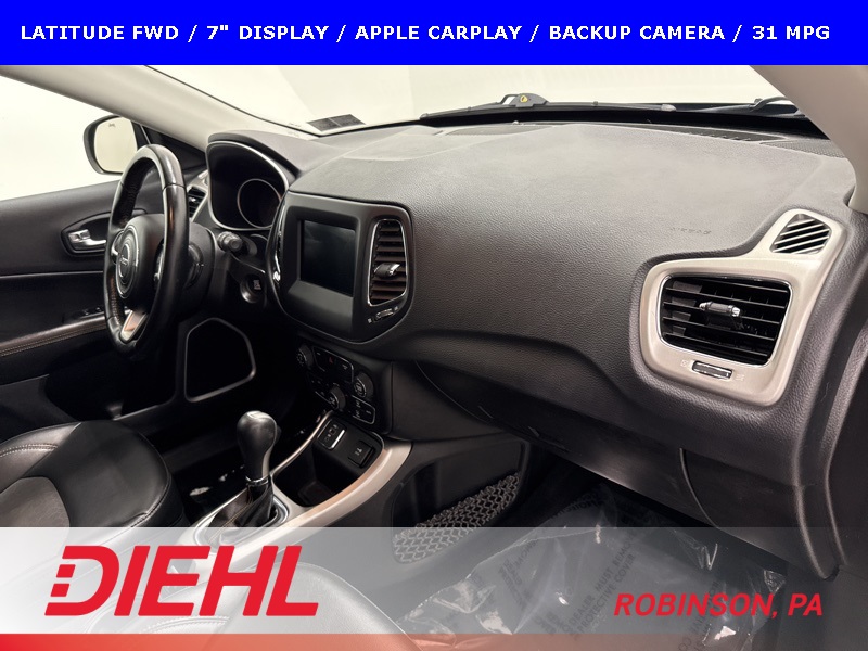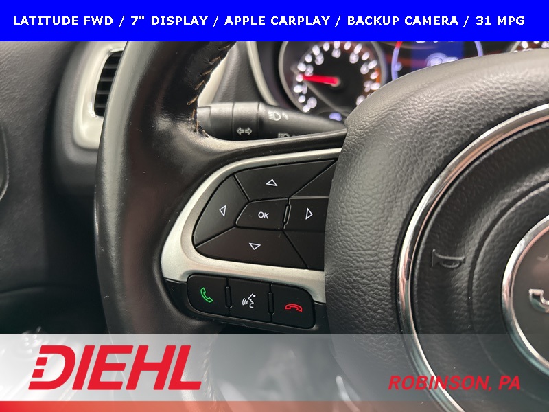 Efficient, comfortable, and easy to live with, this 2019 Jeep Compass Latitude FWD is a great fit for drivers looking for dependable transportation with modern tech, solid safety features, and excellent fuel economy in a compact SUV package.