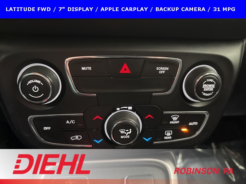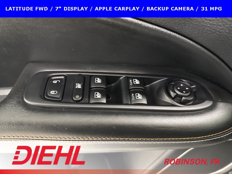 Safety and convenience are well covered with ParkView rear backup camera, electronic stability control, four-wheel disc brakes with ABS, multiple advanced airbag systems, remote keyless entry, and push-button start. The Latitude trim balances technology, comfort, and value without overcomplicating the driving experience.