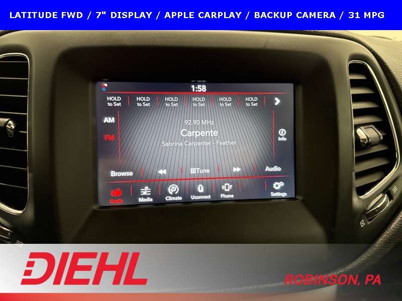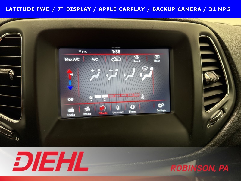 This 2019 Jeep Compass Latitude is a smart, comfortable compact SUV designed to handle daily driving with ease while delivering strong fuel efficiency and Jeep versatility. Powered by a 2.4L 4-cylinder engine paired with a 6-speed automatic transmission, this Compass offers smooth acceleration and confident performance, returning an impressive up to 31 MPG on the highway, making it an excellent choice for commuting or longer road trips.