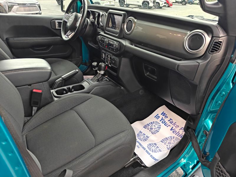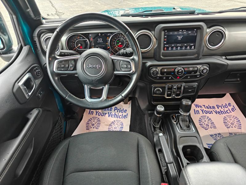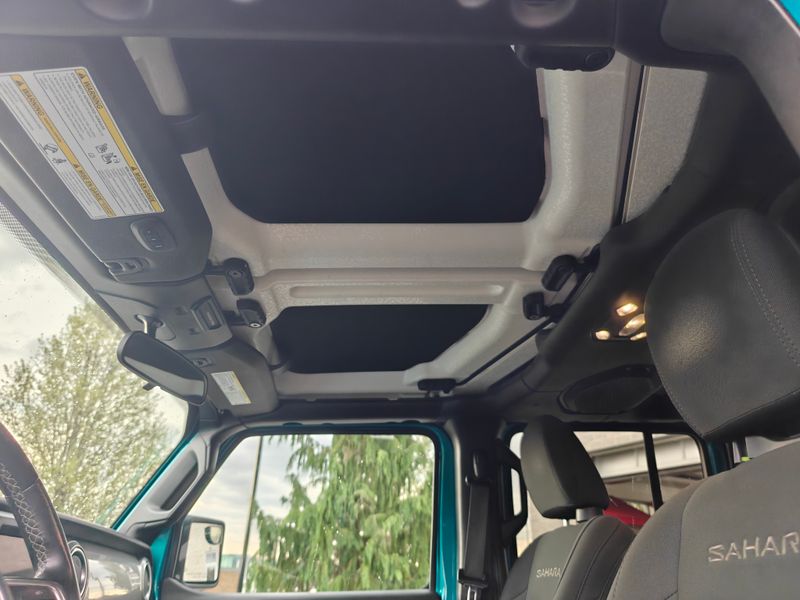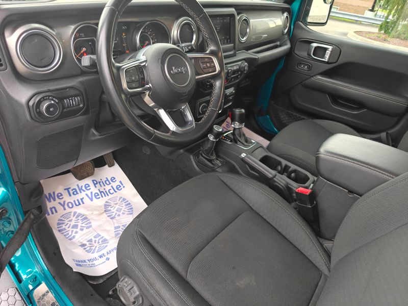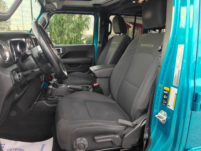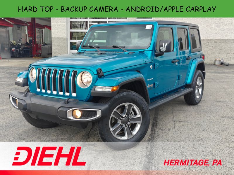 Discover the ultimate adventure-ready SUV with this stunning 2020 Jeep Wrangler Unlimited Sahara. Dressed in a captivating Teal exterior, this Wrangler is powered by a robust 3.6L V6 24V VVT engine mated to an 8-Speed Automatic transmission, delivering an impressive 19 MPG in the city and 22 MPG on the highway.