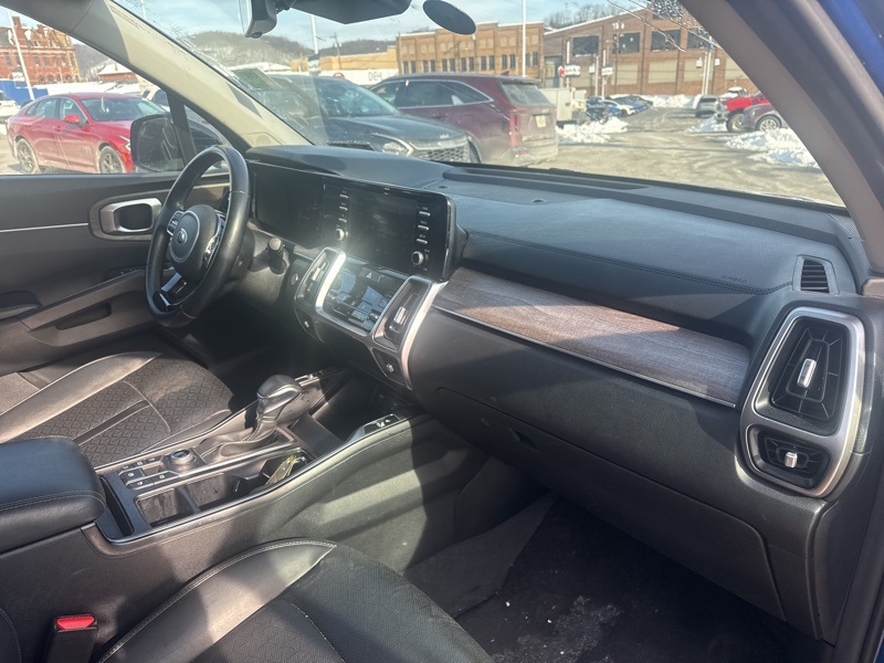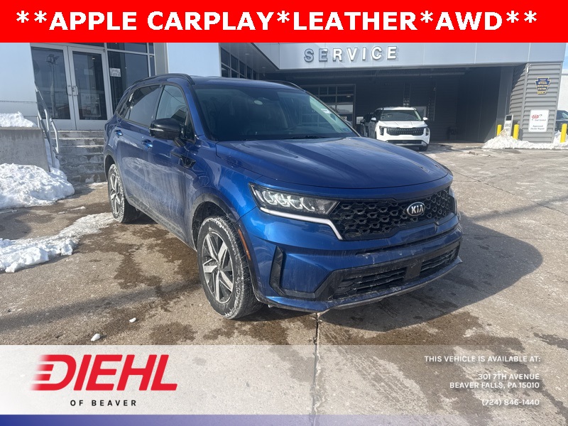 **BACK UP SENSOR**, *KEYLESS START*, **3RD ROW SEATING**, *ALL WHEEL DRIVE*, **BACK UP CAMERA**, **ANDROID AUTO**, **APPLE CAR PLAY**, **HEATED SEATS**, **LANE KEEP ASSIST**, **LEATHER**, **ONE OWNER**, **POWER DRIVERS SEAT**, AWD. Sapphire Blue 2021 Kia Sorento EX AWD 8-Speed DCT 2.5L I4 DGI Turbocharged DOHC 16V LEV3-ULEV70 281hp