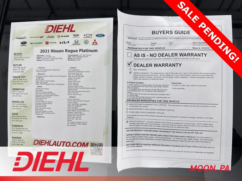 If you are looking for a well equipped, technology packed SUV that still feels refined and capable, this 2021 Nissan Rogue Platinum AWD checks all the right boxes. Find it today at Diehl of Moon Twp before someone else claims it.