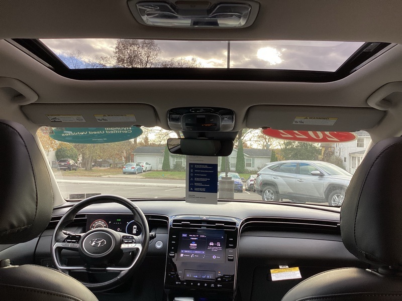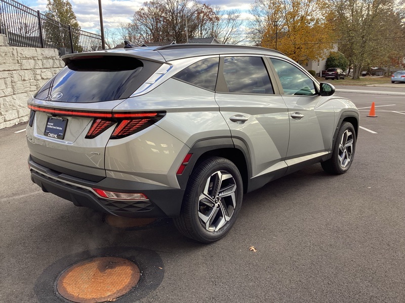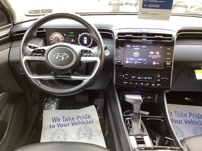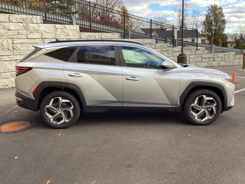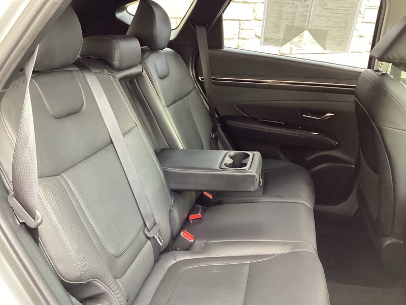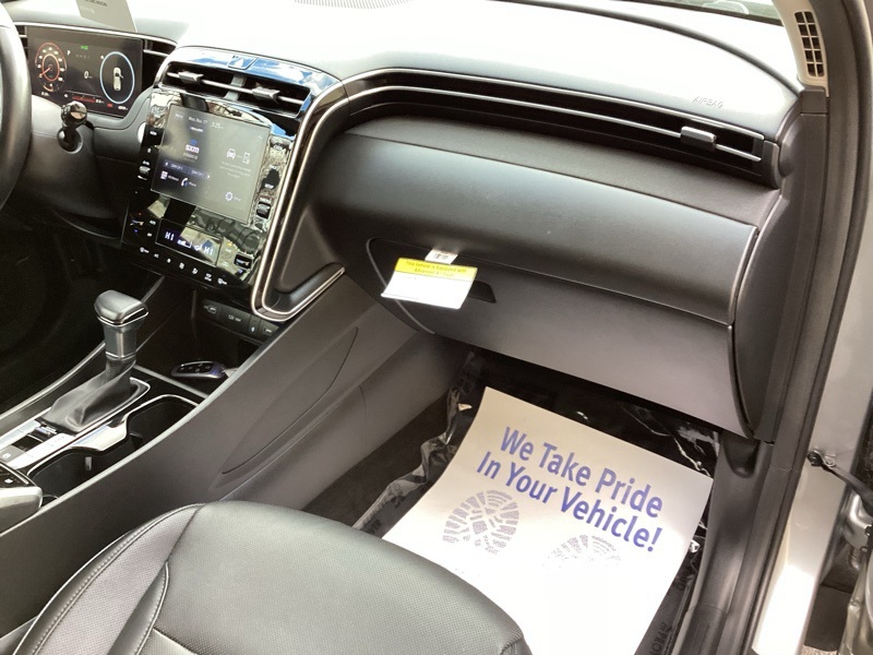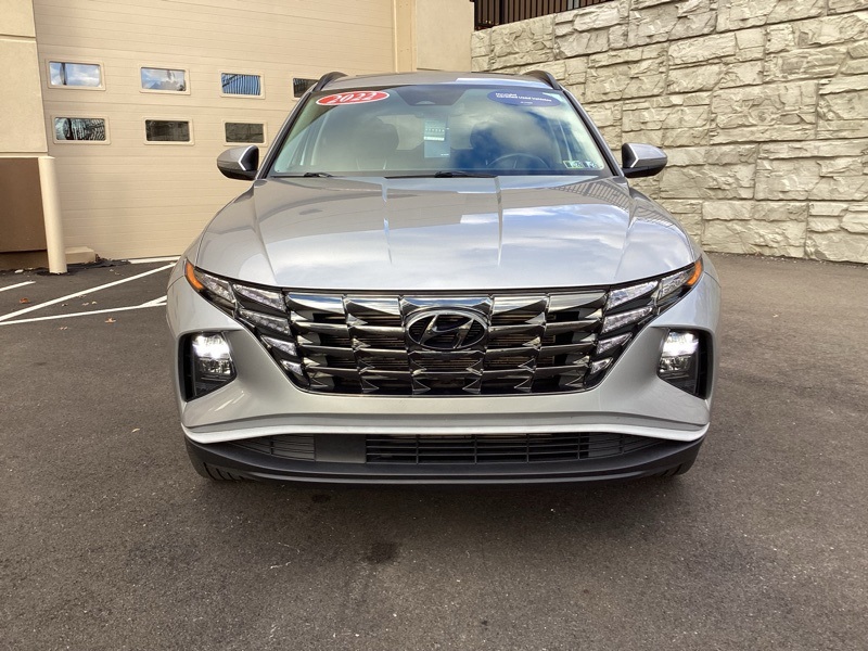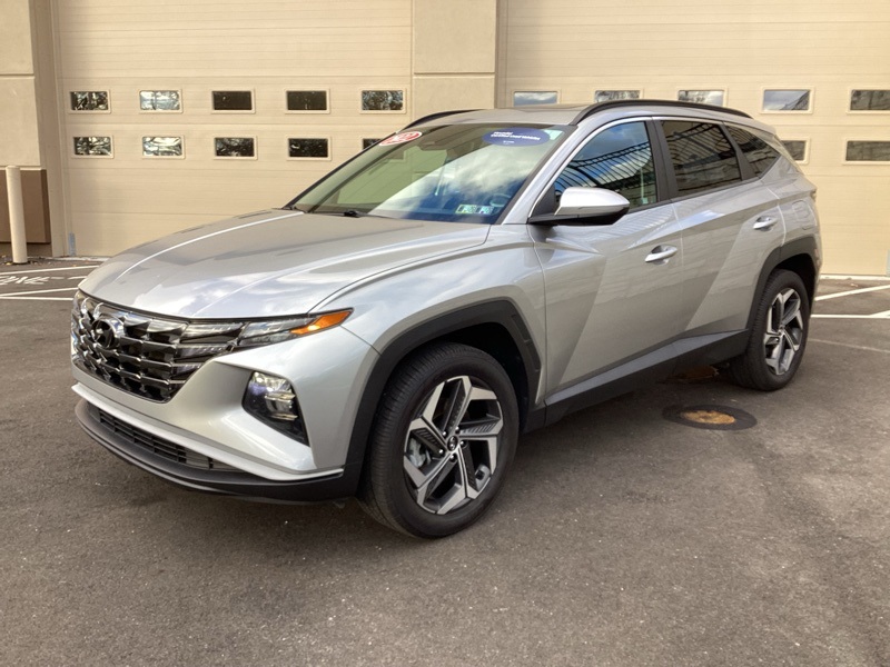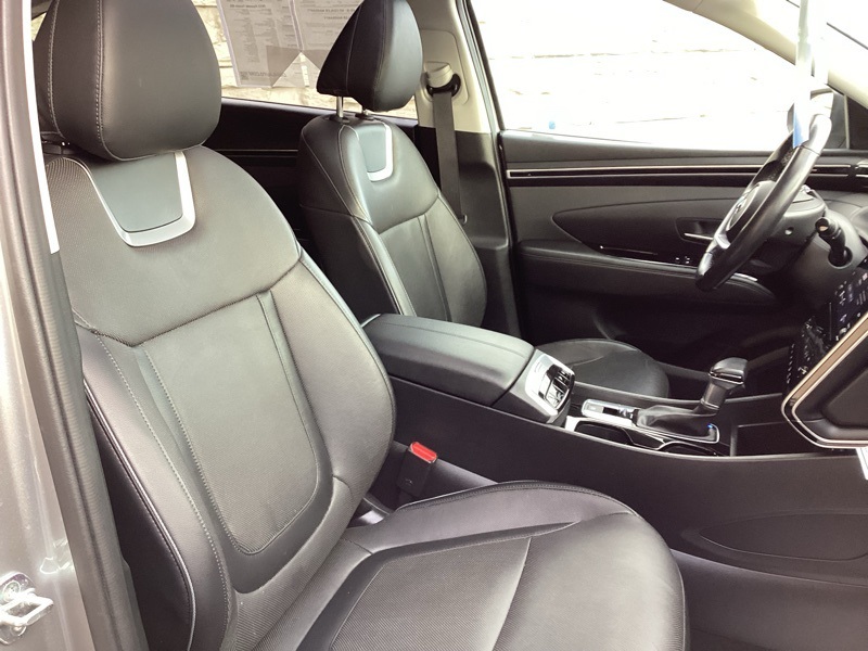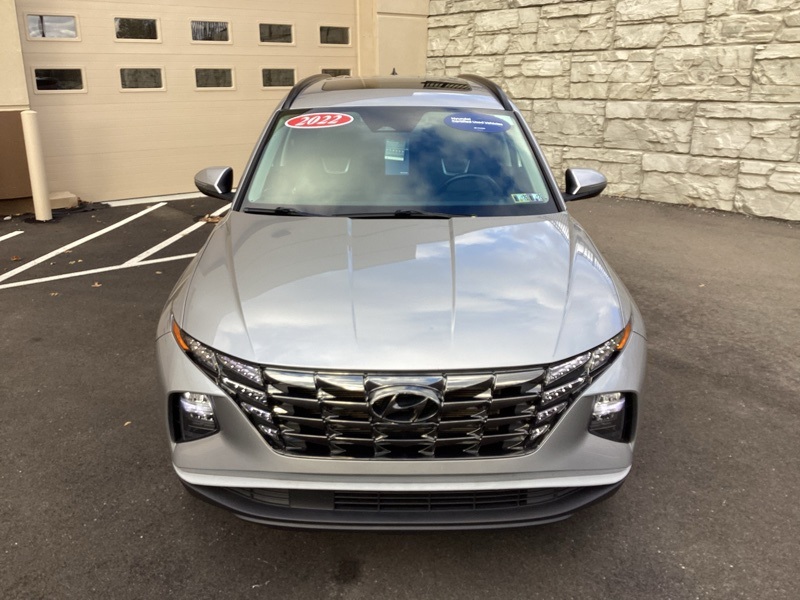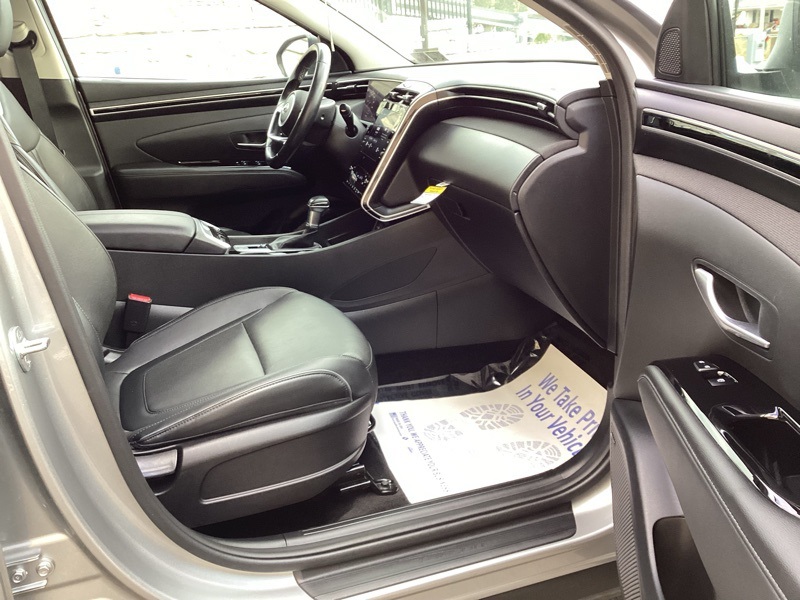 **ONE-OWNER**, **APPLE CAR PLAY**, **ANDROID AUTO**, AWD, 3.648 Axle Ratio, 4-Wheel Disc Brakes, 6 Speakers, ABS brakes, Air Conditioning, Alloy wheels, AM/FM radio: SiriusXM, Apple CarPlay & Android Auto, Auto High-beam Headlights, Brake assist, Bumpers: body-color, Cargo Cover, Cargo Net, Cargo Package, Cargo Tray, Carpeted Floor Mats, Convenience + Premium Package, Dark Chrome Grille & H-Logo, Delay-off headlights, Driver door bin, Driver vanity mirror, Dual front impact airbags, Dual front side impact airbags, Electronic Stability Control, Emergency communication system: Blue Link Connected Car Service (3-year complimentary subscription), First Aid Kit, Four wheel independent suspension, Front anti-roll bar, Front Bucket Seats, Front Center Armrest, Front reading lights, Fully automatic headlights, Heated door mirrors, Heated Front Bucket Seats, Heated front seats, Illuminated entry, Leather Seat Trim, Low tire pressure warning, Occupant sensing airbag, Option Group 03, Outside temperature display, Overhead airbag, Overhead console, Panic alarm, Passenger door bin, Passenger vanity mirror, Power door mirrors, Power driver seat, Power steering, Power windows, Premium 5-LED DRLs, Radio data system, Radio: AM/FM/HD/SiriusXM Audio System, Radio: Bose Premium Audio System w/AM/FM/HD, Rear anti-roll bar, Rear seat center armrest, Rear window defroster, Rear window wiper, Remote keyless entry, Roof rack: rails only, Security system, Speed control, Split folding rear seat, Spoiler, Stain & Odor Resistant Cloth Seat Trim, Steering wheel mounted audio controls, Tachometer, Telescoping steering wheel, Tilt steering wheel, Traction control, Trip computer, Turn signal indicator mirrors, Variably intermittent wipers, Ventilated Front Seats, Wheels: 17" x 7.0J" Alloy. Shimmering Silver 2022 Hyundai Tucson SEL AWD 8-Speed Automatic with SHIFTRONIC 2.5L I4 DGI DOHC 16V LEV3-ULEV70 187hp