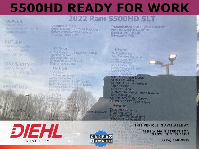 Delmonico Red Pearlcoat 2022 Ram 5500HD SLT 4D Crew Cab 4WD Cummins 6.7L I6 Turbodiesel Aisin 6-Speed Automatic