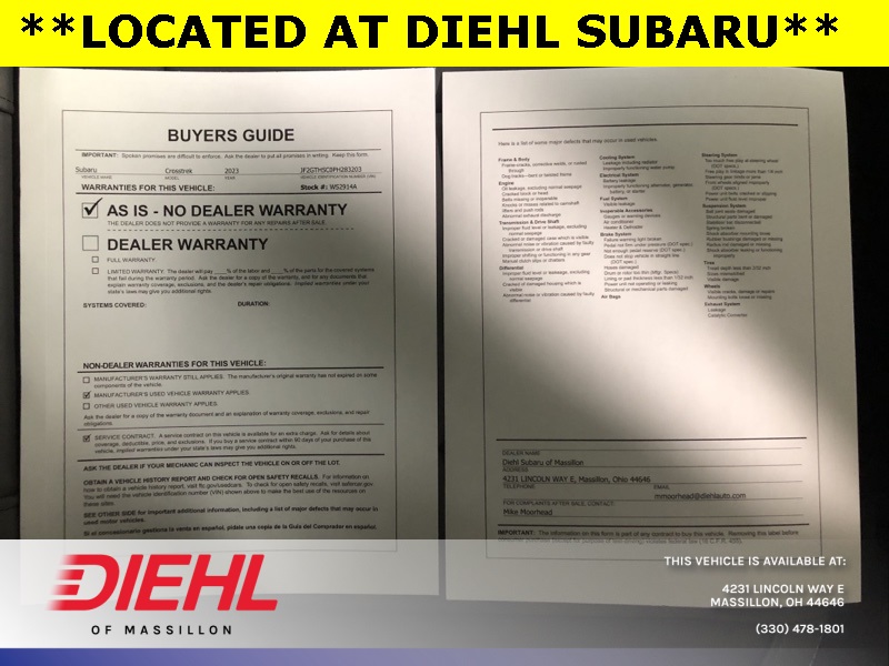 **One Owner**, **Subaru Certified**, Blind Spot Detection w/Rear Cross-Traffic Alert, Moonroof & BSD w/RCTA & 8.0" Multimedia Plus Audio, Power Moonroof, Radio: Subaru STARLINK 8.0" Multimedia Plus System. Certified. 2023 Subaru Crosstrek Sport CARFAX One-Owner. Clean CARFAX.
