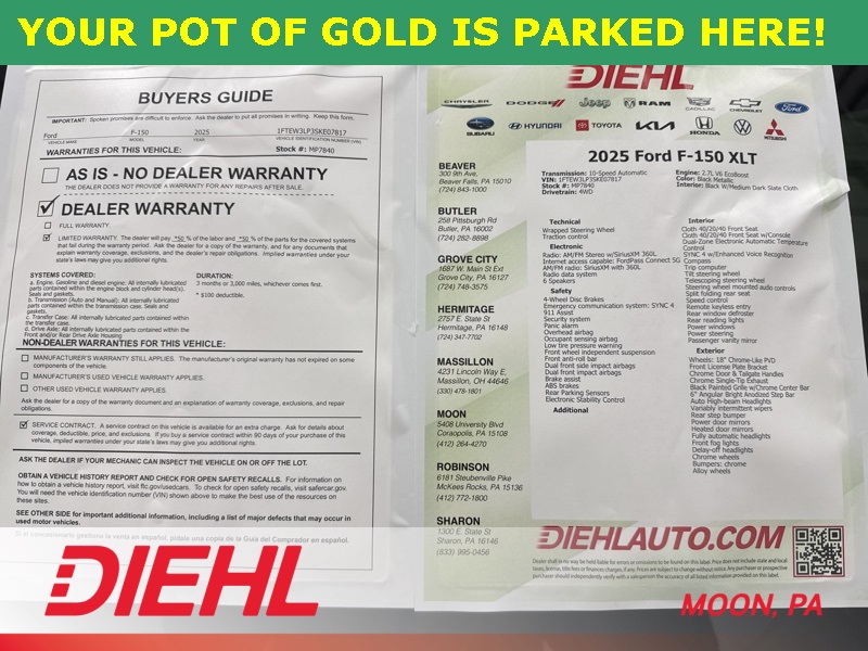 If you're looking for a full size truck that blends modern tech, proven capability, and everyday comfort without trying too hard, this 2025 Ford F 150 XLT checks all the right boxes. Stop by Diehl of Moon and see it in person before someone else decides its the truck their driveway has been waiting for.