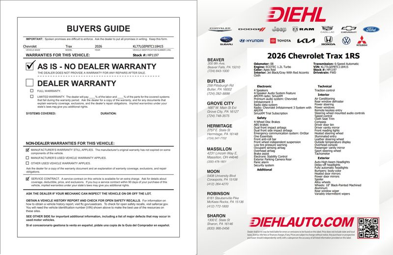 Don't miss your chance to experience the 2026 Chevrolet Trax 1RS for yourself. Call 724-347-7702 to check availability and schedule a test drive today. We're located at 2757 E State Street, Hermitage PA 16148, and we look forward to helping you find your dream car.
